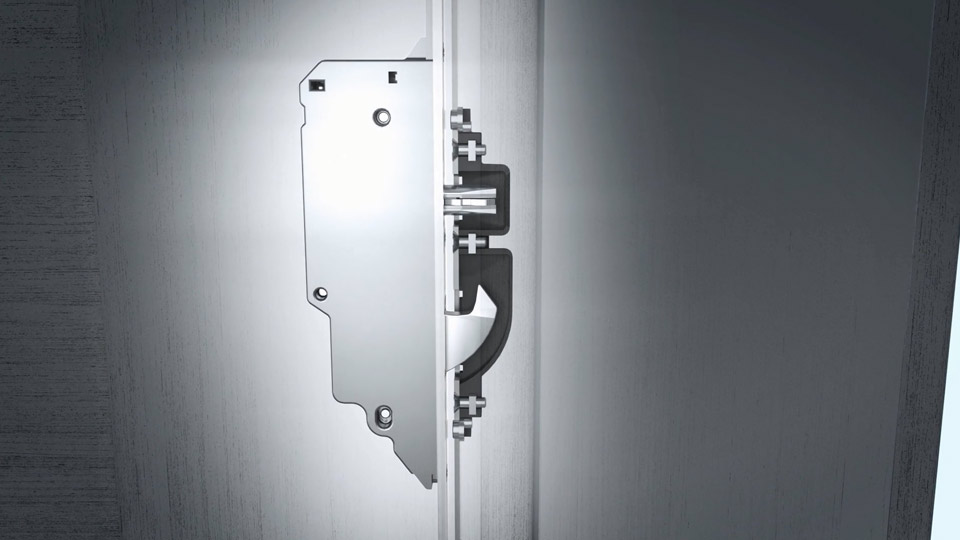 Uzávěr AS 3500 se aktivuje bezkontaktně. Bez střelek narážejících do vedlejší schránky zámku je příjemně tichý a při otevřených dveřích zajišťuje lícující vzhled. Masivní otočné háky, které jsou téměř neviditelně zapuštěny v liště, se aktivují až při zavírání dveří pomocí magnetického spouštěče, který automaticky vyrovnává tolerance vůle v drážce. Protože otočné háky zajištěné proti zpětnému tlaku se uzavírají směrem zdola nahoru, fungují i u svěšených dveří.