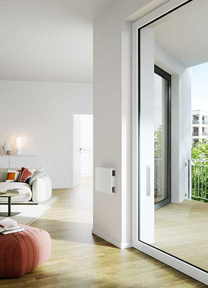 Auch der Wandlüfter AEROPLUS WRG verbindet höchste Wärmerückgewinnung mit zahlreichen Ausstattungsmerkmalen für 360° Raumkomfort. Der kompakte Wandlüfter zur gleichzeitigen Regulierung von Zu- und Abluft in einer einzigen Lösung kombiniert eine Vielzahl an Leistungsmerkmalen, die in dieser Form einzigartig sind. Hierzu zählen ein niedriges Eigengeräusch, eine hervorragende Luftleistung und eine hohe Schalldämmung. Ein echtes Plus für die intelligente Gebäudeautomation ist seine hohe Energieeffizienz: Mit seiner Wärmerückgewinnung von bis zu 93 % ist der kompakte Lüfter sogar förderfähig. In der Ausführung als AEROPLUS WRG smart unterstützt er zudem die bequeme Bedienung über die SIEGENIA Comfort App sowie einen per CO2-Sensor gesteuerten Automatikbetrieb, in dem eine intelligente Sensorik verbrauchte Luft erkennt und den Luftaustausch bedarfsgerecht steuert. Per KNX lässt sich der Lüfter zudem in beiden Varianten in die Gebäudeleittechnik einbinden. Auf diese Weise kann er z. B. im Sommer in intelligente Szenarien für die Nachtlüftung zur passiven Kühlung integriert werden.