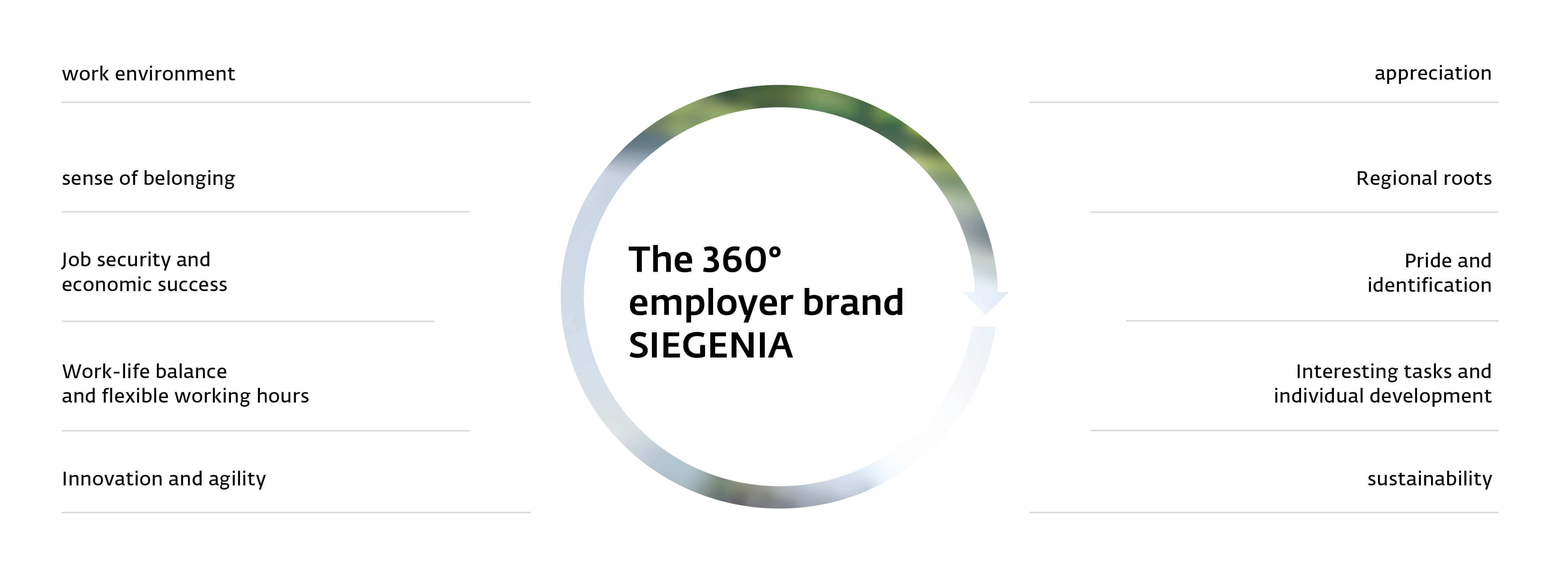 Especially important to our employees are the aspects mentioned here in association with their activity at SIEGENIA. As a company we want to continually improve ourselves in these areas with concrete measures and to be able to measure ourselves to that effect. It's our goal to create a work environment in which our employees feel valued and comfortable.
