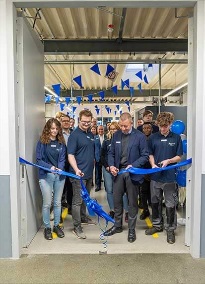 After a warm welcome Nico Kimmeskamp, trainer and initiator of the project, started with a presentation of the concept and the background of the new training centre. Wieland Frank, Executive Partner of SIEGENIA, acknowledged in his address the special commitment of Nico Kimmeskamp and emphasised the key importance of qualified professional training for the future viability of the family-held firm. He provided the symbolic climax of the event with the subsequent festive cutting of the ribbon. This symbolic action was accompanied by the production of the two first official pieces of work, a CNC milling and a 3D printing. Following this was a guided workshop tour where the guests could experience live what future-focused training at the KFV plant means. The trainees played an active role in the course of this as guides and moderators and enthusiastically presented the technical equipment and their own first projects. The opening celebration was rounded off by a casual get-together with finger food, which provided space for personal conversations.